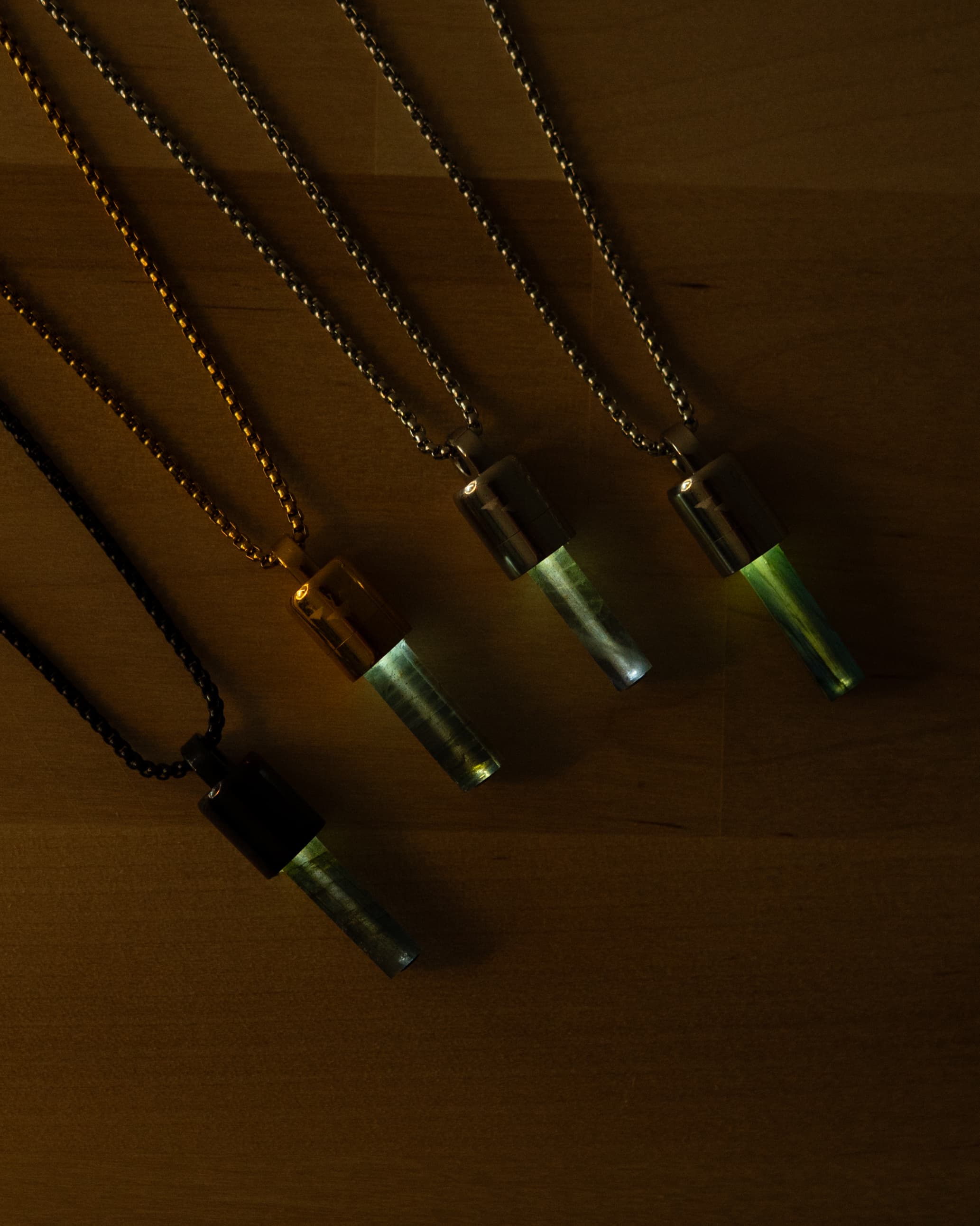 Your Spire Pendant arrives ready to glow with a matching chain and extra batteries.